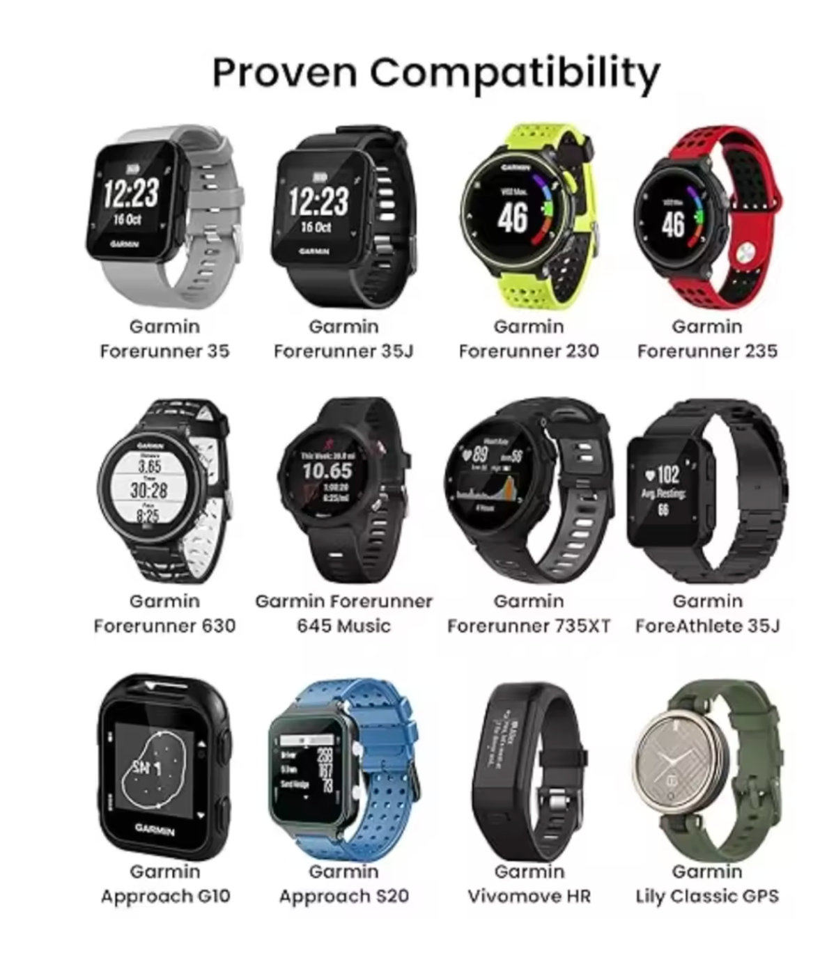 6. compatible with for Garmin for forerunner 35 235 230 630 735xt smart watch.