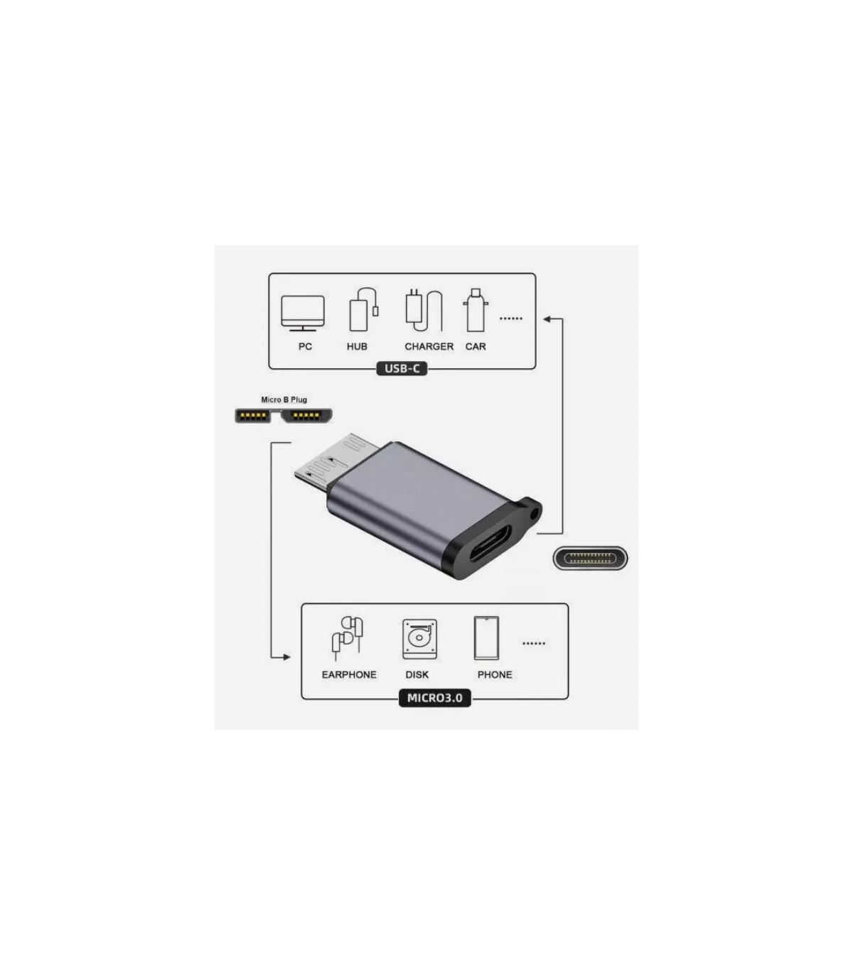 Type: Micro-B USB 3.0 Male to USB-C Female Converter