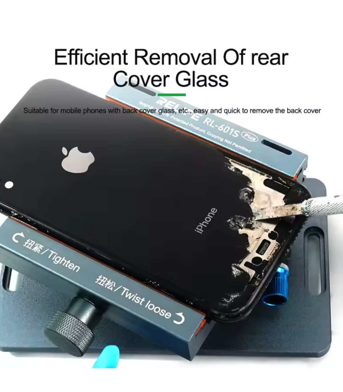 Relife RL-601S Plus is an innovative tool designed to facilitate the process of separating the display and removing the glass back cover of mobile phones. With a unique 2-in-1 design, it allows both safe removal of the screen,