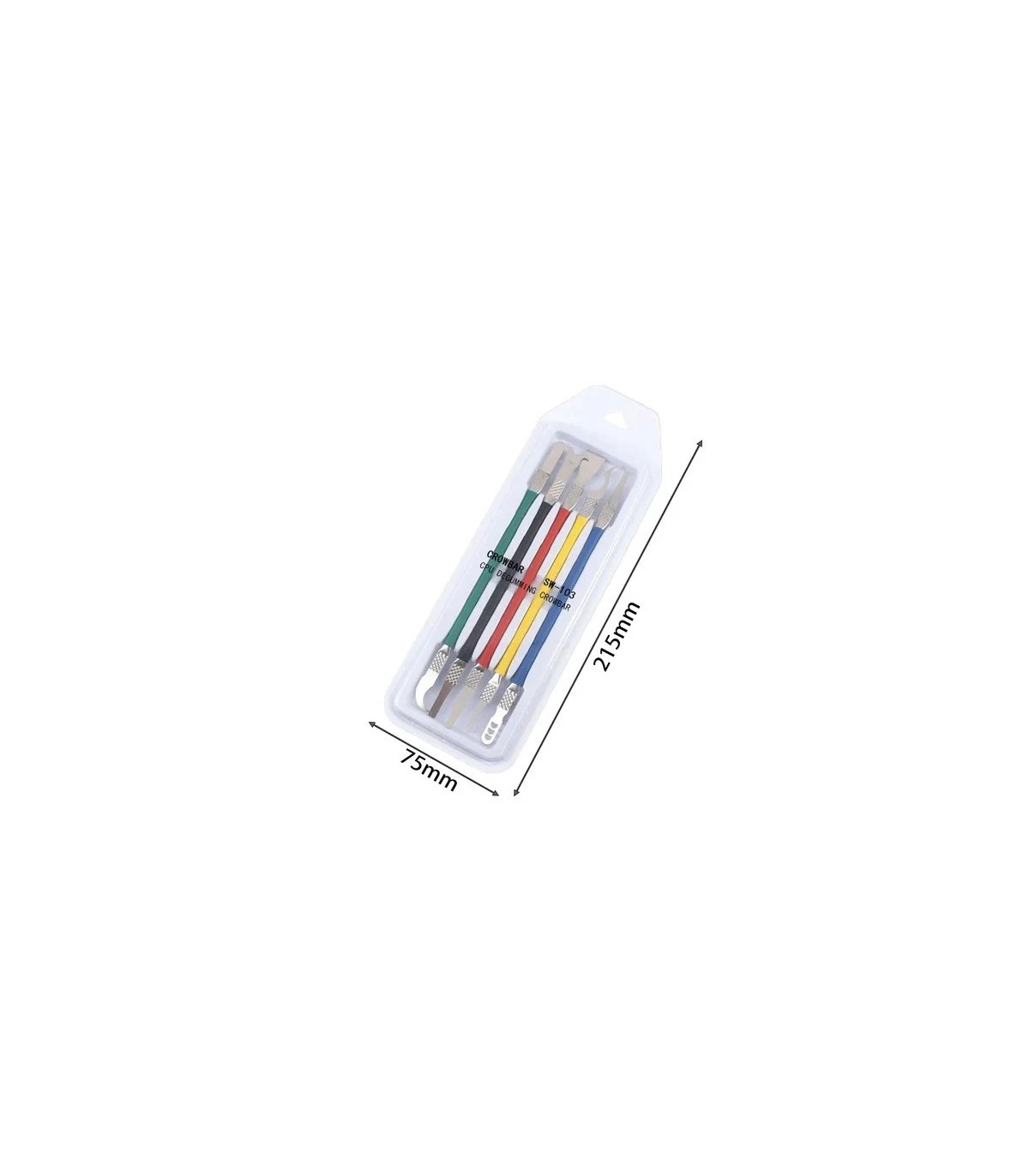 The 5in1 SW-103 CPU BGA Chip Repair Kit includes multiple prying and glue-removal tools that help safely remove adhesive, underfill glue, and components without damaging the board. It is widely used for IC lifting, CPU separation, and electronic opening tasks.