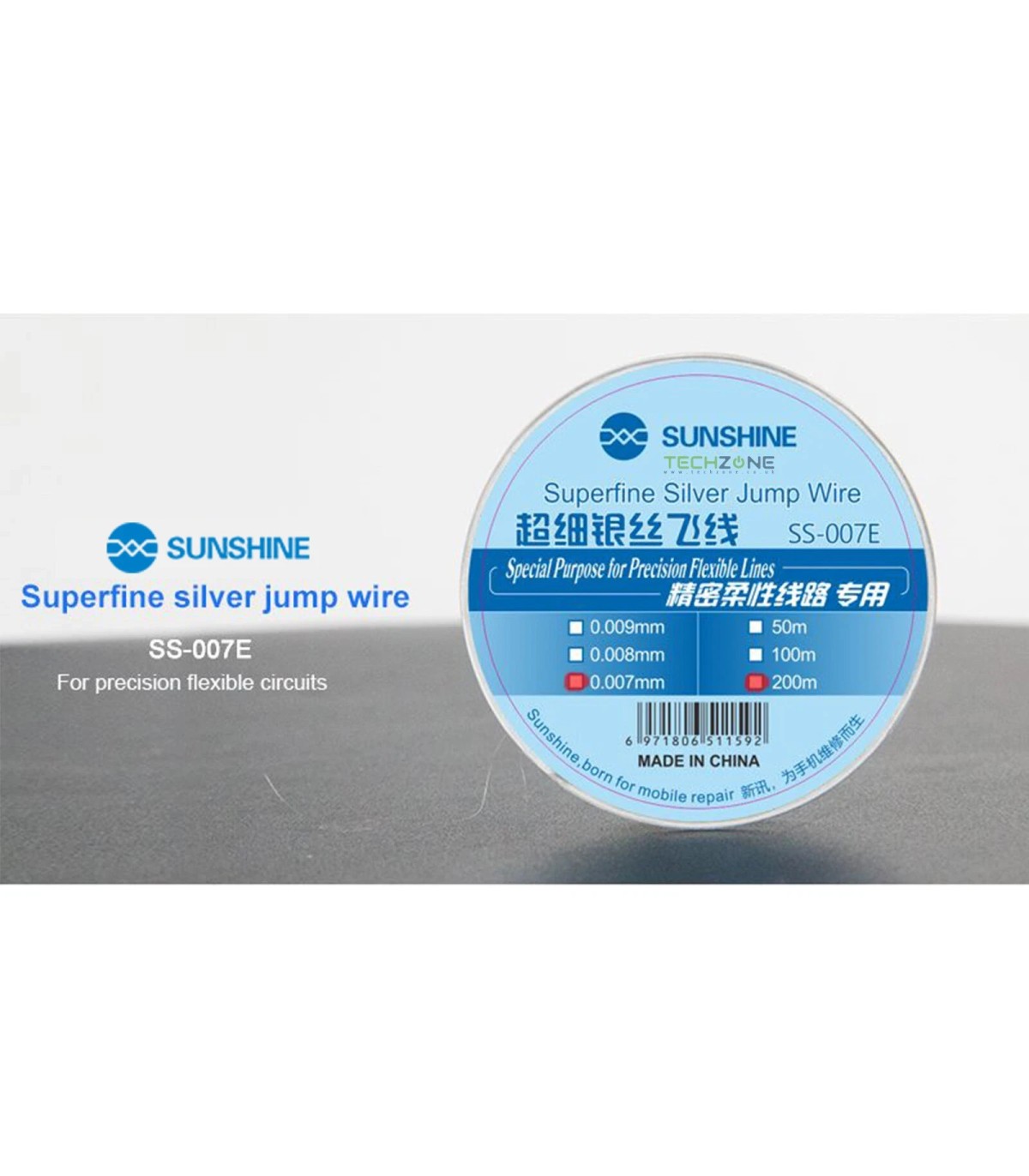 The SUNSHINE 0.007mm uninsulated Copper Jump FlyLine Wire for Motherboard Repair is designed for precision micro-soldering and circuit repair on mobile phone and electronics motherboards. This SUNSHINE 0.007mm copper jump flyline wire is ideal for repairing broken traces, jump wiring, IC pin connections, and fine PCB line restoration.