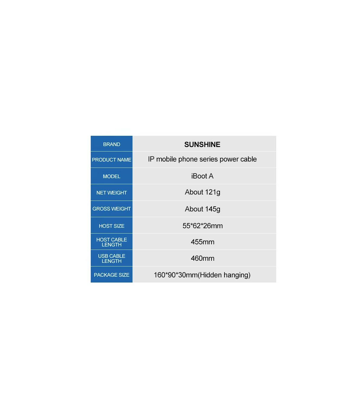 Sunshine iBoot USB DC Power Supply Test Cable