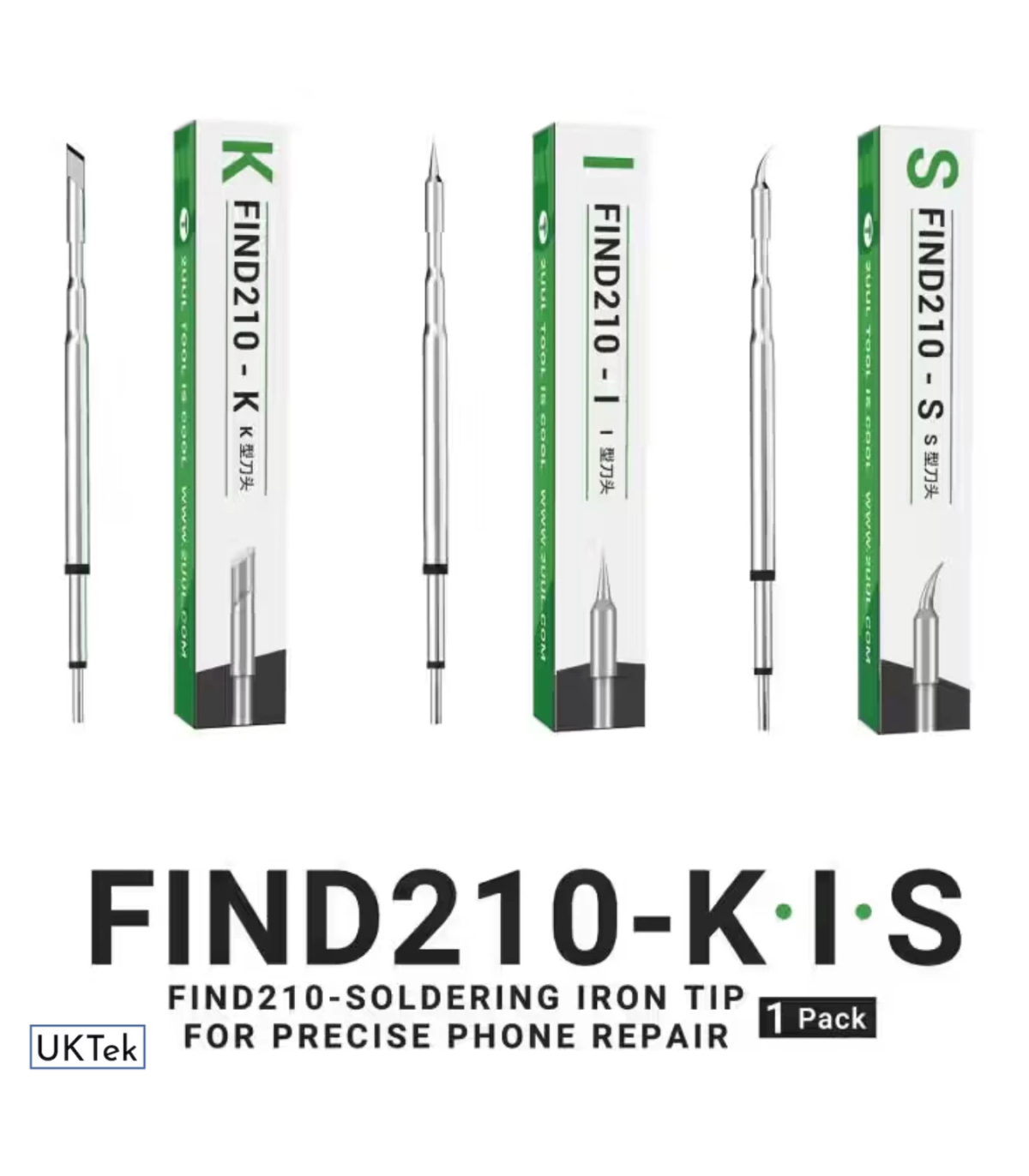 The 2UUL FIND210 K/I/S Soldering Iron Tips Tip Compatible T210 C210 Stations is a professional soldering tip set designed for precision PCB, CPU, and mobile phone motherboard repair. This 2UUL FIND210 K/I/S soldering iron tips compatible T210 C210 stations set includes multiple tip shapes for different soldering applications, ensuring high efficiency and accuracy.