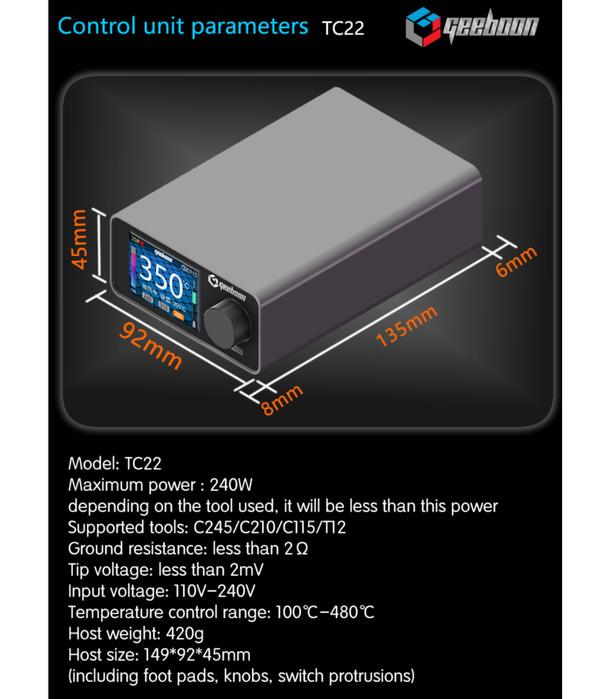 1 × GEEBOON TC22 240W Soldering Station Host