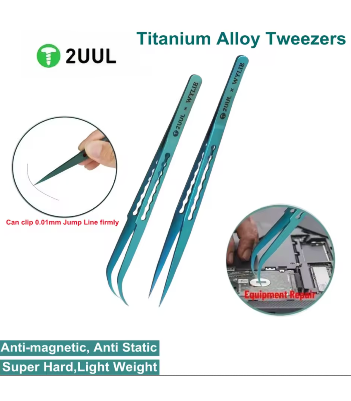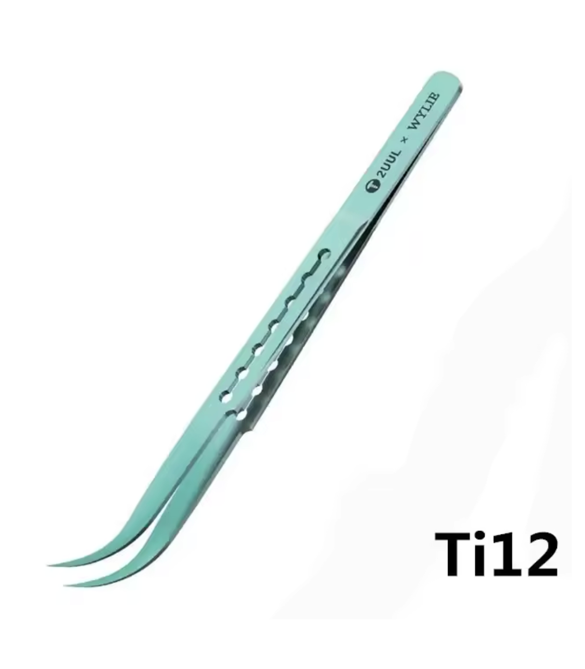 The 2UUL Ti12 Titanium Alloy Curved Tweezer is a professional-grade tool designed for high-precision electronics repair, micro-soldering, and smd component handling. Built with special titanium alloy, it offers exceptional strength, anti-magnetic properties, anti-static protection, and corrosion resistance—making it ideal for delicate work under a microscope.